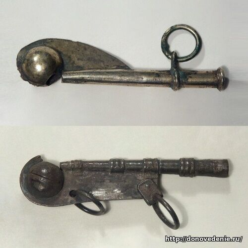 Боцманский серебряный свисток, Золотая орда, 14 векБоцманский свисток - подобные свистки (дудки) использовали боцманы. Длина: 7,5 см., материал серебро, храниться в Государственном Эрмитаже, инв. № ТБ-394. Как именно эти свистки применялись на территории Золотой Орды, точно сказать сложно. Эти свистки нашли в конце XIX века. Один купили у людей, которые занимались раскопками, а другой, с ободком сохранившейся позолоты, нашли в богатом детском захоронении Белореченского могильника на Кубан ... Читать дальше » |